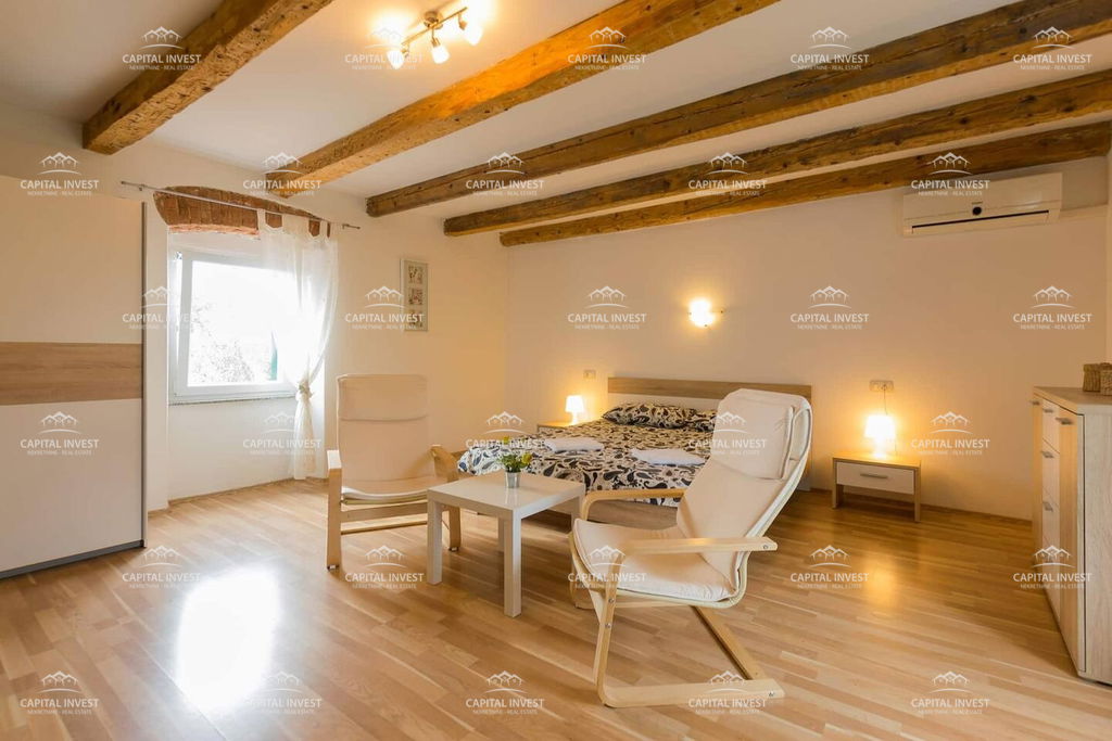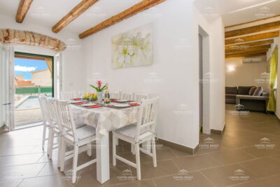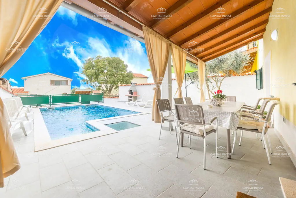 Prodajemo kuću ukupne neto reducirane površine 134 m2, smještenu u okolici grada Pule. Ova nekretnina raspolaže s tri spavaće sobe i prostire se na parceli od 250 m2, nudeći idealan spoj privatnosti i funkcionalnog prostora za svakodnevni život. Sastoji se od prizemlja i dva kata. U prizemlju se nalazi prostrani dnevni boravak, kuhinja, kupaonica te spremište. Na prvoj etaži smještena je prostrana spavaća soba i velika kupaonica, dok se na drugoj etaži nalaze dodatne dvije spavaće sobe. Kuća je smještena u blizini prirode te nudi lijep pogled i obilje prirodnog svjetla zahvaljujući vrlo sunčanoj orijentaciji. Uređena okućnica pruža dodatnu vrijednost, a terasa i dvorište savršeni su za opuštanje ili druženje na otvorenom. Osigurana su dva parkirna mjesta unutar okućnice. Unutrašnjost je opremljena modernom kuhinjom s aparatima, perilicom posuđa, perilicom rublja, TV-om, krevetom i radnim stolom, što omogućuje trenutno useljenje bez dodatnih ulaganja. Grijanje i hlađenje osigurani su putem struje i klima uređaja, dok dodatne pogodnosti uključuju bazen, roštilj i mogućnost držanja kućnih ljubimaca. Lokacija nekretnine omogućuje brz pristup svim važnim sadržajima grada Pule, dok mirno okruženje i blizina prirode čine ovu kuću idealnom za obiteljski život ili kao investiciju s potencijalom za dugoročnu vrijednost. Kuća je u turističkom najmu i kategorizirana s 3 zvjezdice.