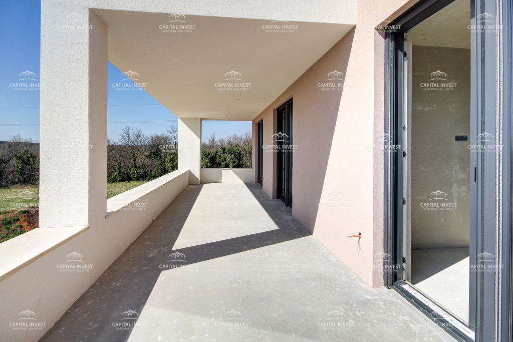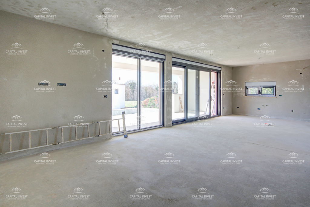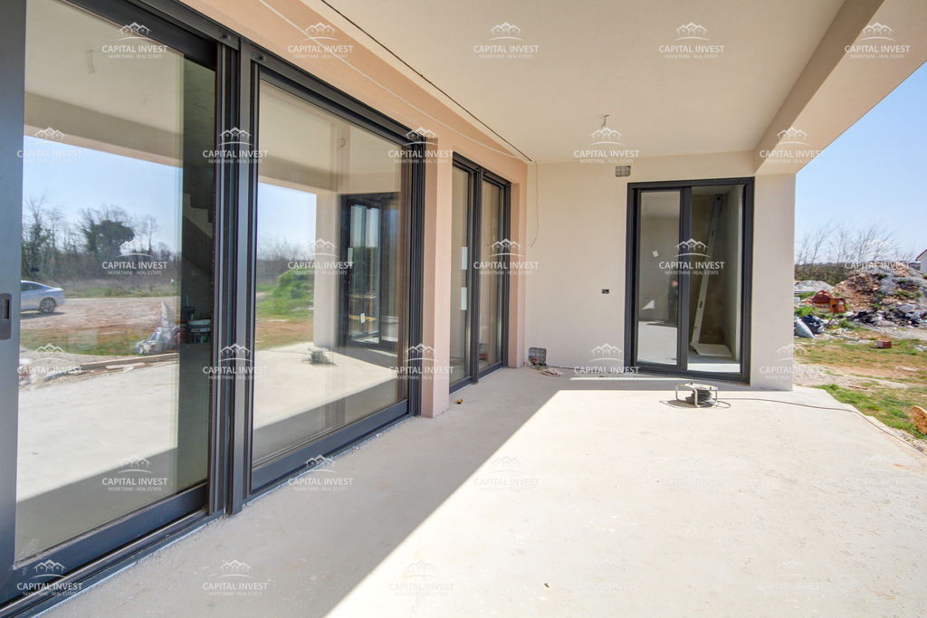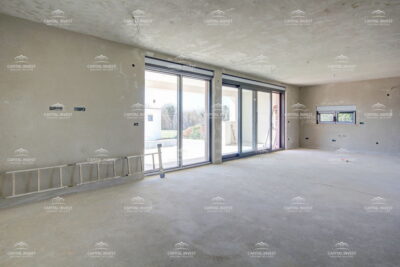 Prodajemo samostojeću modernu kuću u izgradnji površine 212 m2, smještenu u okolici Marčane. Ova nekretnina nudi izniman spoj suvremenog dizajna i mirnog okruženja, idealna za sve koji traže kvalitetan život u blizini prirode. Kuća se ističe svojom prostranošću. U prizemlju se nalaze kuhinja s blagovaonicom, dnevni boravak, ostava, jedna spavaća soba, tehnička soba, toalet i natkrivena terasa. Na prvom katu nalaze se tri spavaće sobe i dvije kupaone, svaka soba ima izlaz na terasu koja gleda na bazen. Zahvaljujući orijentaciji prema sjeveru i jugu, prostorije su optimalno osvijetljene tijekom cijelog dana, dok veliki prozori pružaju lijep pogled i omogućuju obilje prirodnog svjetla. Za ugodnu klimu tijekom svih godišnjih doba brinu se klima uređaji u svakoj prostoriji te podno grijanje u prizemlju. Posebnu vrijednost ovoj nekretnini daje bazen, savršen za opuštanje u privatnosti vlastita doma. Mirna lokacija, blizina prirode i vrlo sunčano okruženje čine ovu kuću izuzetno atraktivnom.
